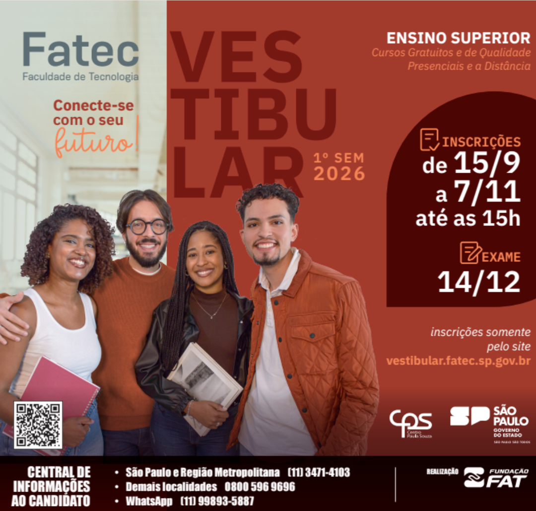 A Fatec Votorantim abre as portas para o Vestibular 1º semestre de 2026!